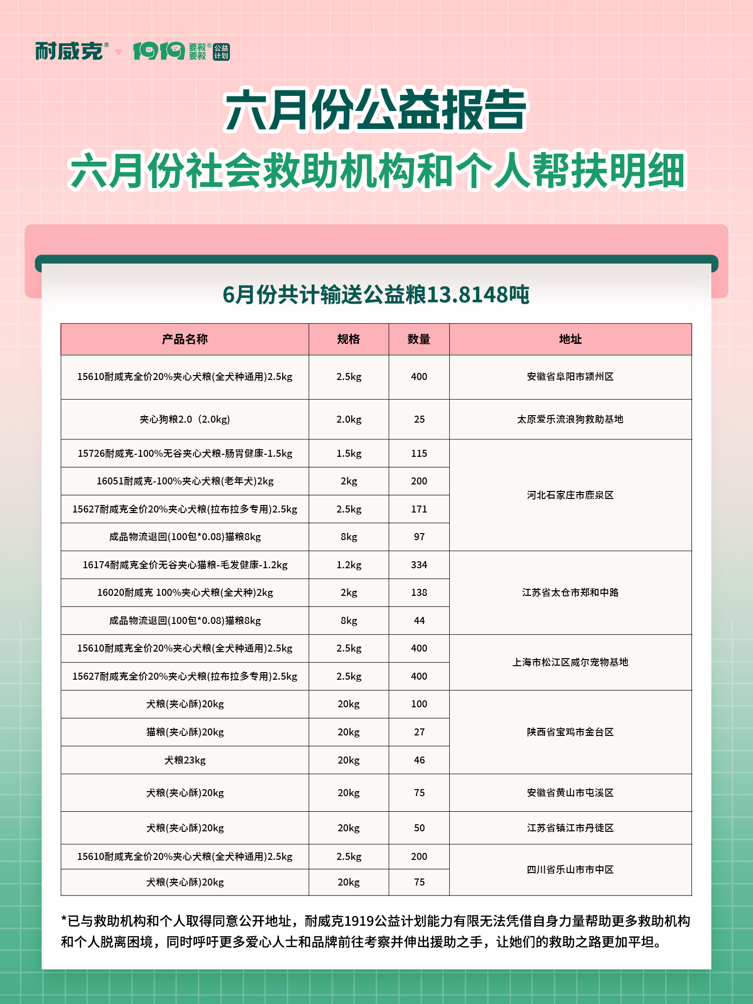 耐威克1919要救要救公益計劃 六月公益報告